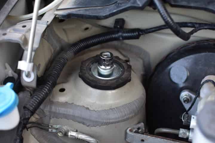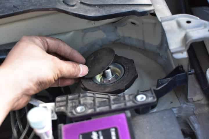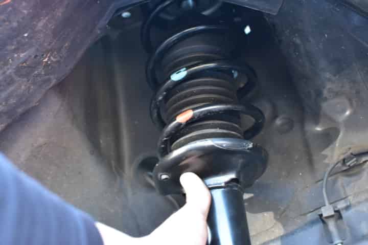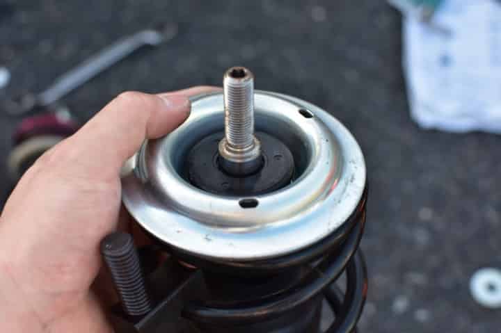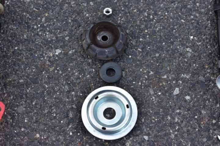 クリップ取って、一番上の緩めておいたナット外しまして車高調取り外します。