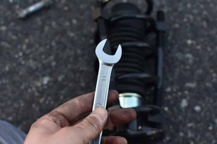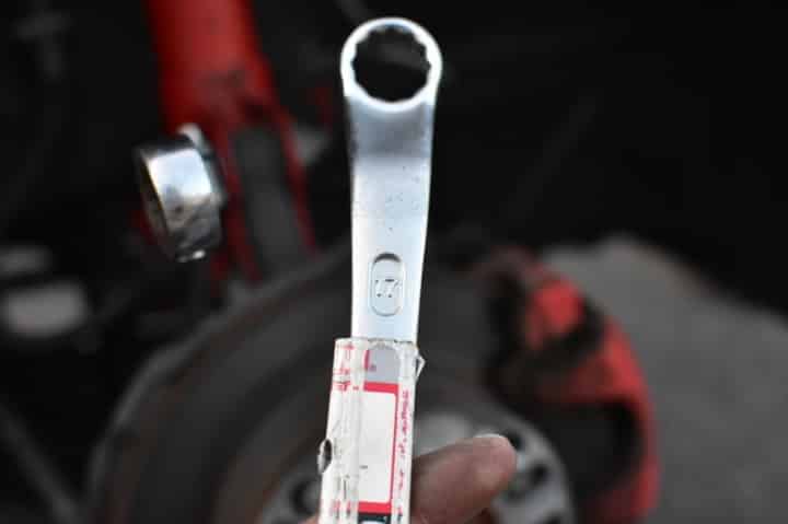 これで!共回りしません。17mmメガネと6角レンチ。確か…、6mmの六角だったような。
