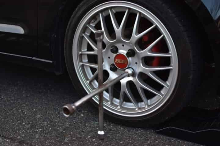 まずは、さて、ジャッキアップする前にホイールのナット緩めましょう